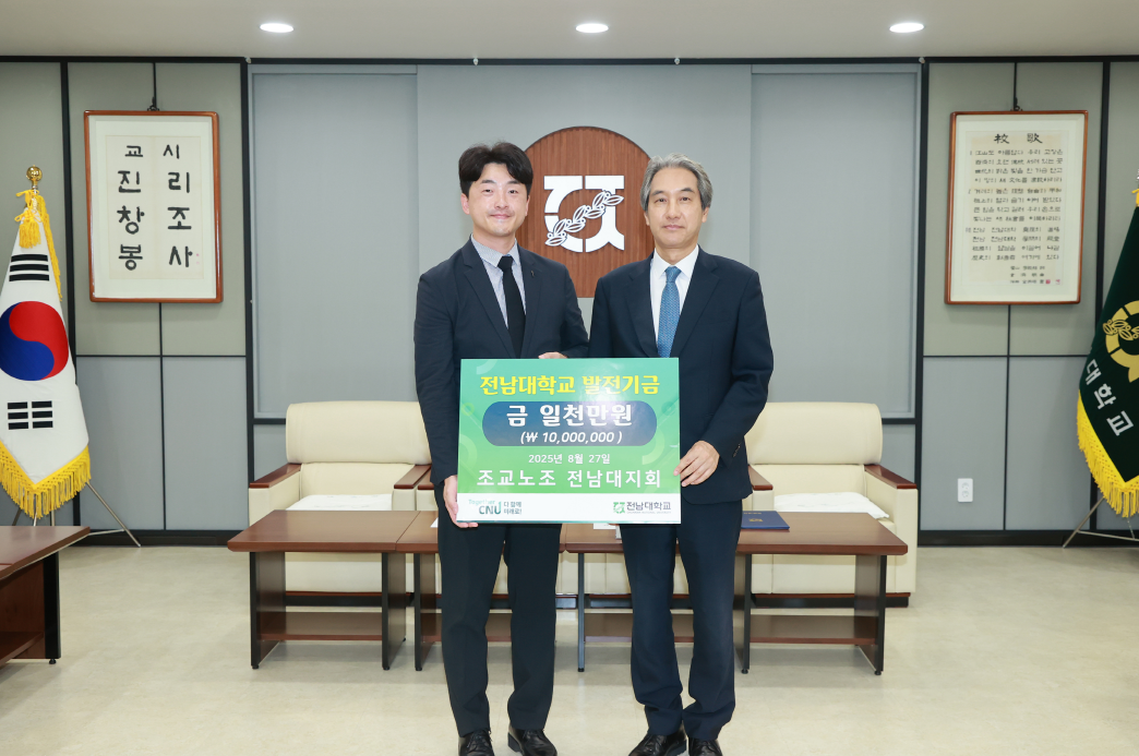 9일 전남대에 따르면 전국국공립대학교 조교노동조합 전남대학교지회(지회장 정진)가 지난 8월 27일 전남대학교에 발전기금 1천만 원을 기부했다.